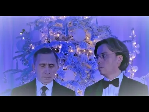 Так, в кадре на фоне новогодней елки рядом с комиком стоит мужчина, загримирован под главу России. И они оба будто бы пытаются начать поздравительную речь.